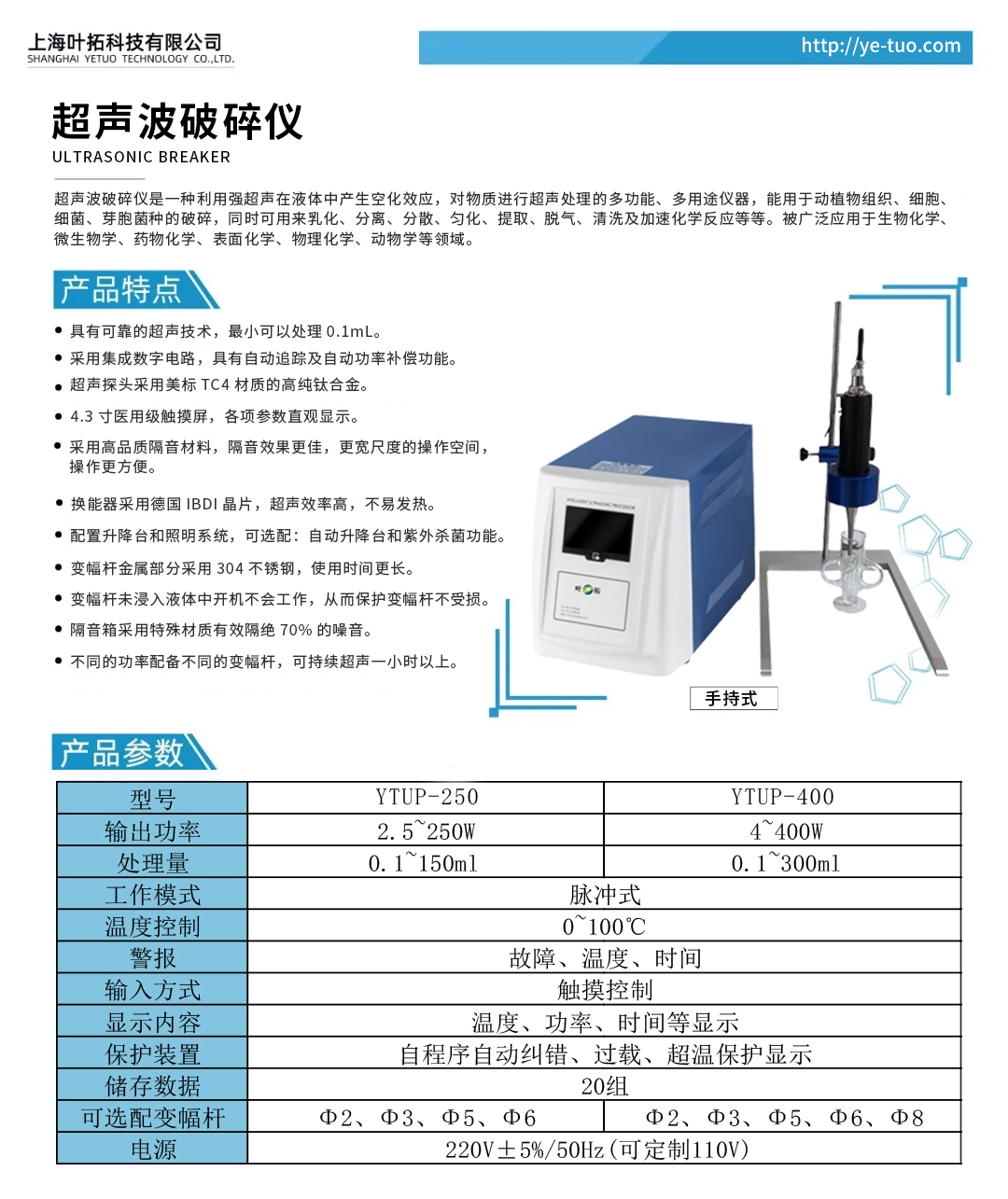 葉拓YTUP系列手持式超聲波細胞破碎儀產品特點: