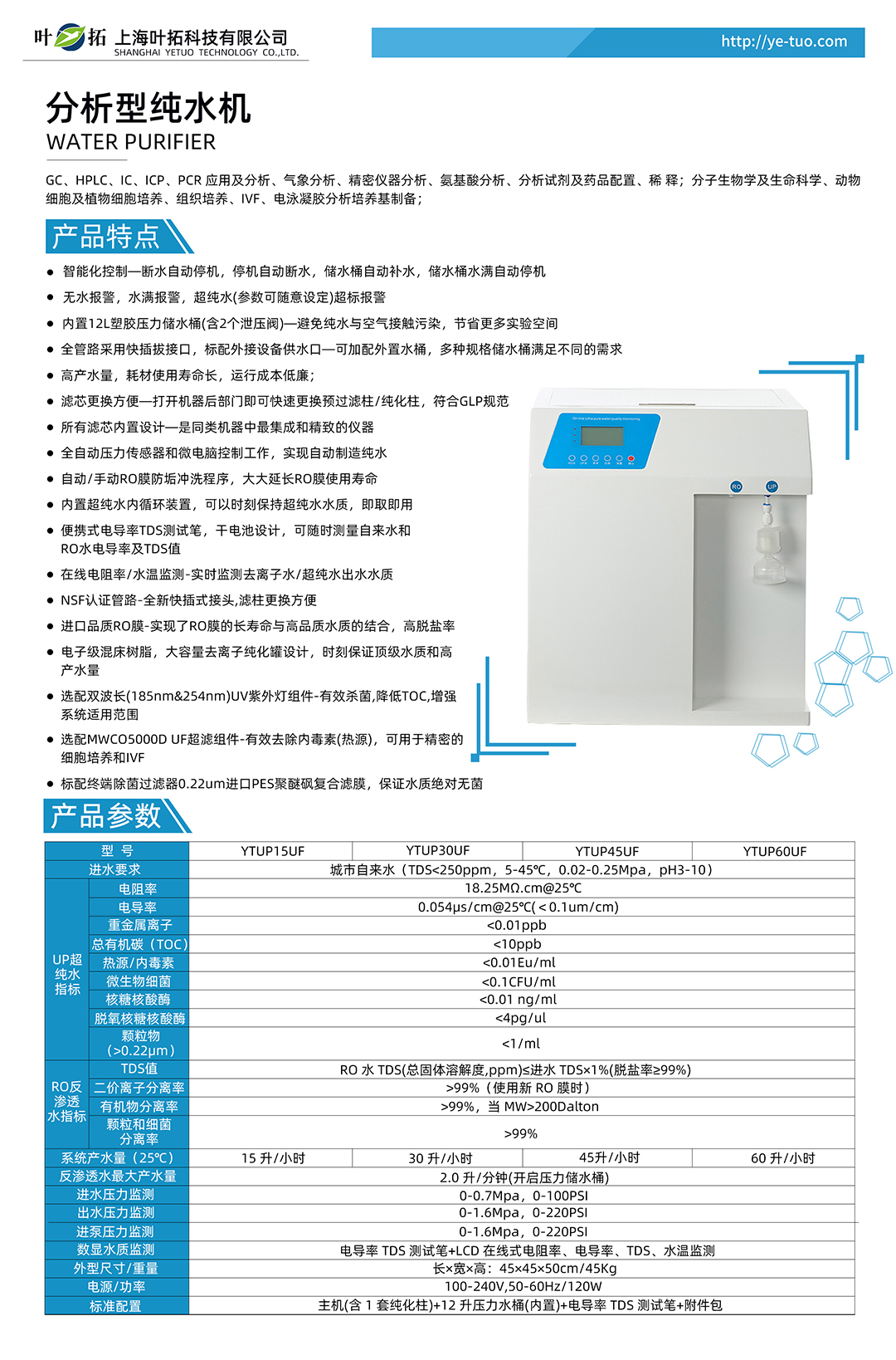 - 內置超純水內循環裝置,可以時刻保持超純水水質,即取即用