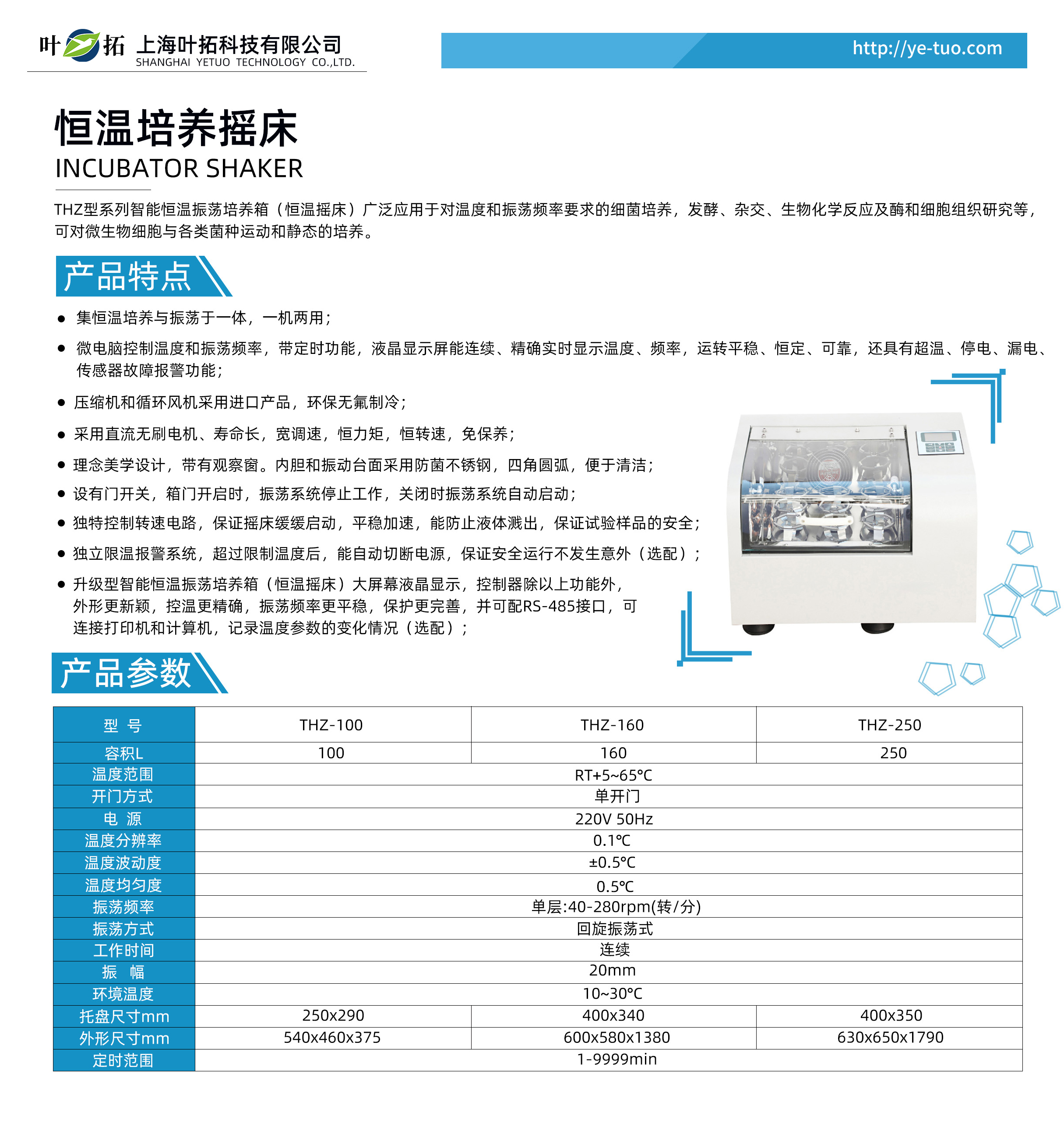 THZ型系列智能恒溫振蕩培養箱(恒溫搖床)廣泛應用于對溫度和振蕩頻率要求的細菌培養,發酵、雜交、生物化學反應及酶和細胞組織研究等,可對微生物細胞與各類菌種運動和靜態的培養。