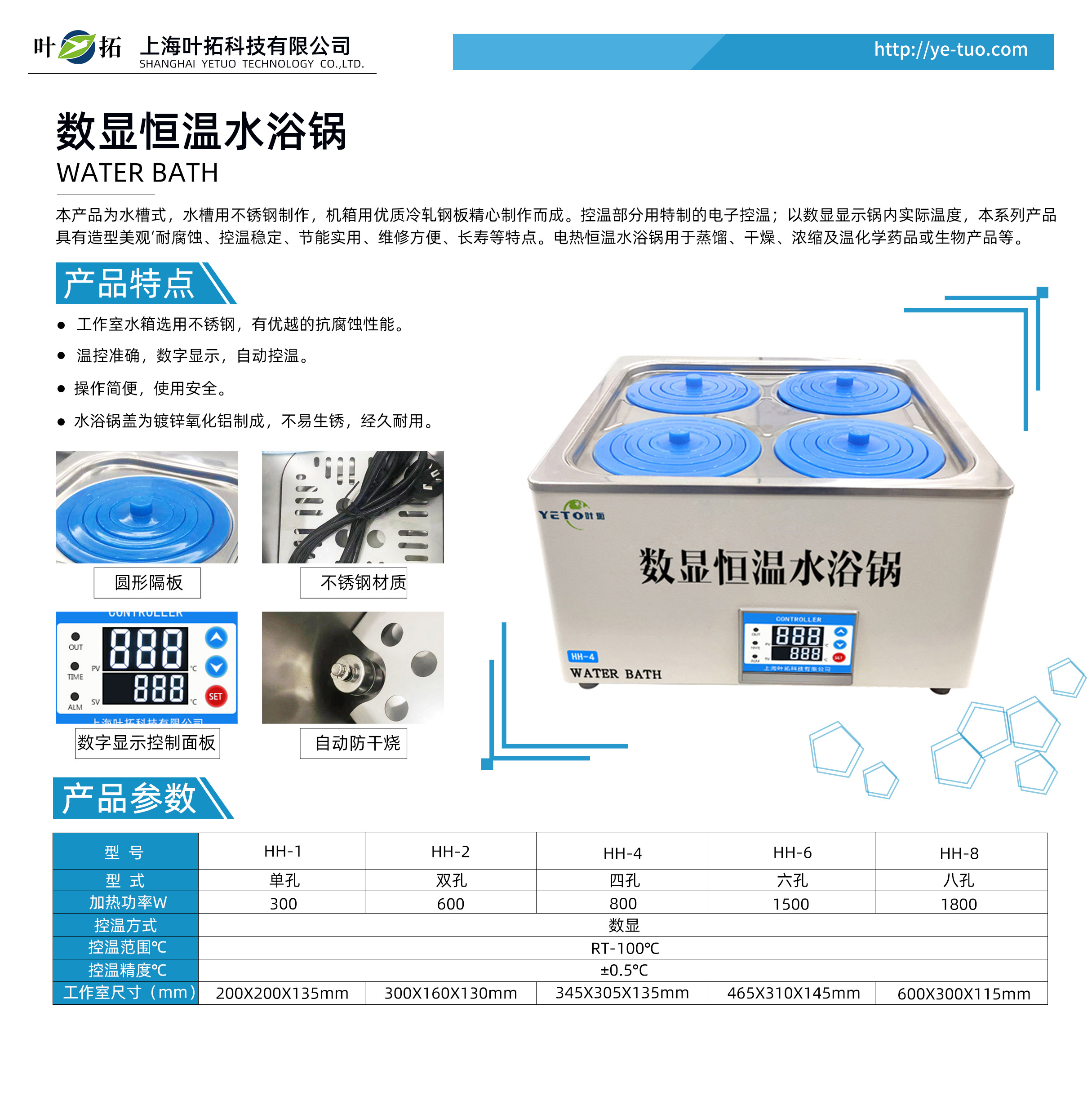 葉拓HH系列數顯恒溫水浴鍋產品特點