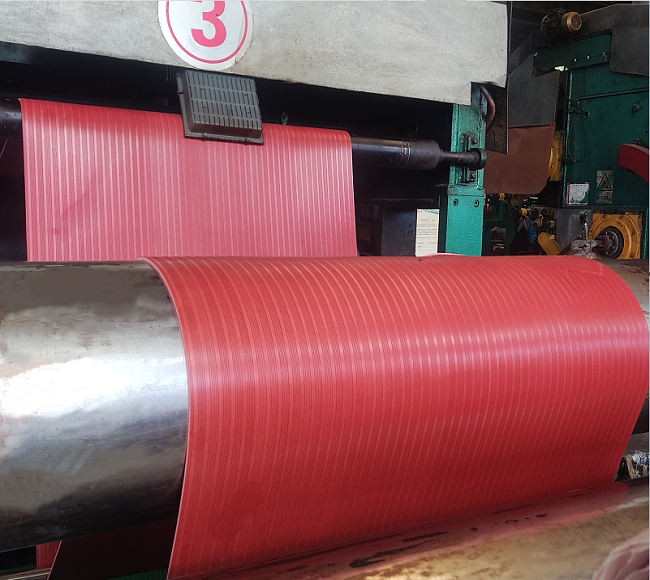 溝板表面是防滑粗細條紋,具有防滑、耐磨、耐老化、抗壓和防水等性能,被廣泛應用于走廊、門廳、地面、運動場所、裝卸場所、門墊和客車墊等。