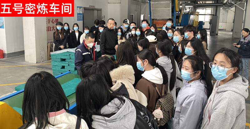 參觀團(tuán)分成三組分別參觀了我公司的技術(shù)研發(fā)中心,新建三號(hào)制品車(chē)間、五號(hào)密煉中心車(chē)間,并在四樓電教室觀看了我公司的宣傳片、聽(tīng)了廠歌,雙方就管理問(wèn)題進(jìn)行了現(xiàn)場(chǎng)互動(dòng)。參觀完畢學(xué)生們體驗(yàn)了員工餐。